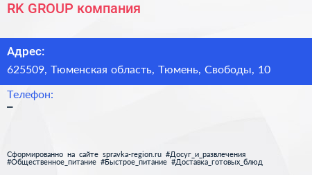 RK-GROUP, компания по адресу 625509, Тюменская область, Тюмень, Свободы, 10 в дальнейшем Организация, размещена в следующих категориях: