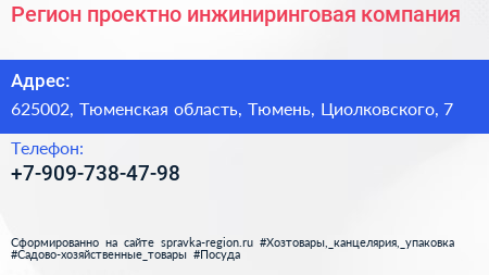 Регион, проектно инжиниринговая компания по адресу 625002, Тюменская область, Тюмень, Циолковского, 7 в дальнейшем Организация, размещена в следующих категориях: