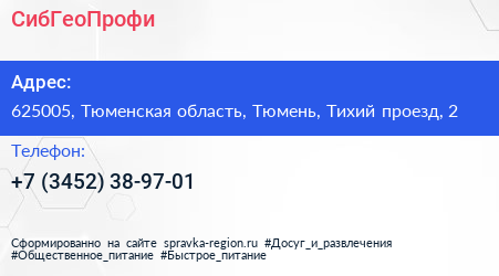 СибГеоПрофи по адресу 625005, Тюменская область, Тюмень, Тихий проезд, 2 в дальнейшем Организация, размещена в следующих категориях: