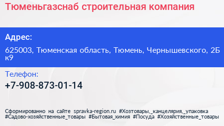 Тюменьгазснаб, строительная компания по адресу 625003, Тюменская область, Тюмень, Чернышевского, 2Б к9 в дальнейшем Организация, размещена в следующих категориях:
