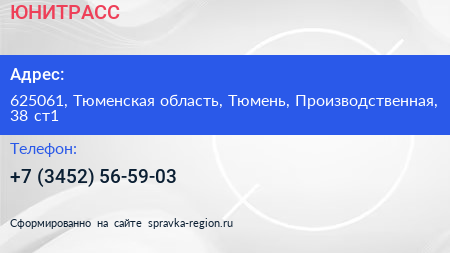 ЮНИТРАСС по адресу 625061, Тюменская область, Тюмень, Производственная, 38 ст1 в дальнейшем Организация, размещена в следующих категориях: