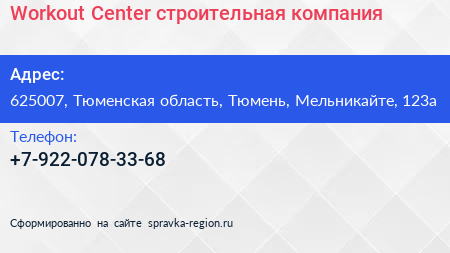 Workout Center, строительная компания по адресу 625007, Тюменская область, Тюмень, Мельникайте, 123а в дальнейшем Организация, размещена в следующих категориях: