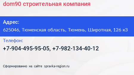 dom90, строительная компания по адресу 625046, Тюменская область, Тюмень, Широтная, 126 к3 в дальнейшем Организация, размещена в следующих категориях: