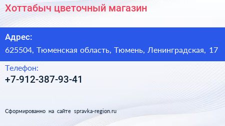 Хоттабыч, цветочный магазин по адресу 625504, Тюменская область, Тюмень, Ленинградская, 17 в дальнейшем Организация, размещена в следующих категориях: