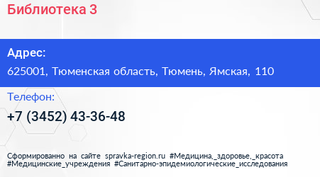 Библиотека №3 по адресу 625001, Тюменская область, Тюмень, Ямская, 110 в дальнейшем Организация, размещена в следующих категориях:
