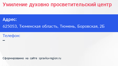 Умиление, духовно-просветительский центр по адресу 625053, Тюменская область, Тюмень, Боровская, 2Б в дальнейшем Организация, размещена в следующих категориях: