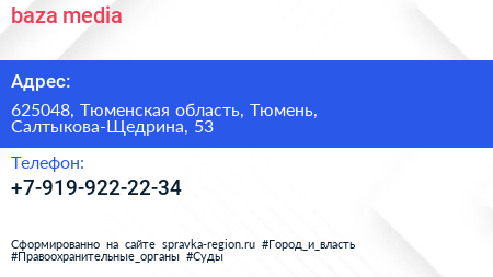 baza.media по адресу 625048, Тюменская область, Тюмень, Салтыкова-Щедрина, 53 в дальнейшем Организация, размещена в следующих категориях: