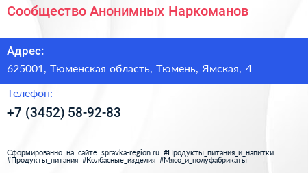Сообщество Анонимных Наркоманов по адресу 625001, Тюменская область, Тюмень, Ямская, 4 в дальнейшем Организация, размещена в следующих категориях: