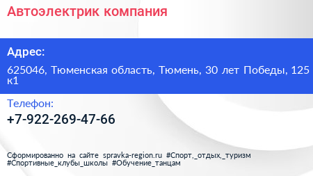 Автоэлектрик, компания по адресу 625046, Тюменская область, Тюмень, 30 лет Победы, 125 к1 в дальнейшем Организация, размещена в следующих категориях: