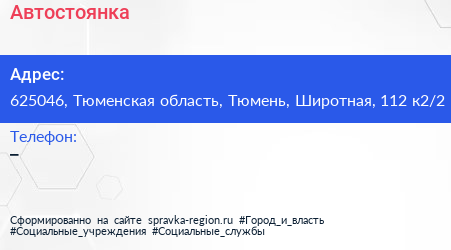 Автостоянка по адресу 625046, Тюменская область, Тюмень, Широтная, 112 к2/2 в дальнейшем Организация, размещена в следующих категориях: