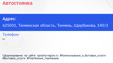 Автостоянка по адресу 625031, Тюменская область, Тюмень, Щербакова, 140/3 в дальнейшем Организация, размещена в следующих категориях: