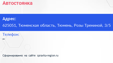 Автостоянка по адресу 625051, Тюменская область, Тюмень, Розы Трениной, 3/5 в дальнейшем Организация, размещена в следующих категориях:
