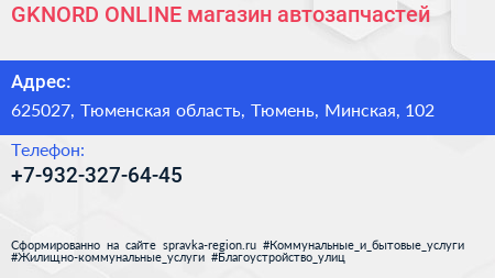 GKNORD.ONLINE, магазин автозапчастей по адресу 625027, Тюменская область, Тюмень, Минская, 102 в дальнейшем Организация, размещена в следующих категориях: