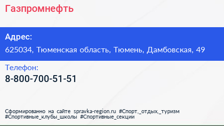 Газпромнефть по адресу 625034, Тюменская область, Тюмень, Дамбовская, 49 в дальнейшем Организация, размещена в следующих категориях:
