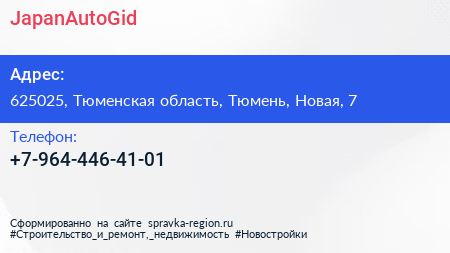 JapanAutoGid по адресу 625025, Тюменская область, Тюмень, Новая, 7 в дальнейшем Организация, размещена в следующих категориях: