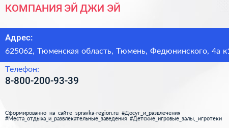 КОМПАНИЯ ЭЙ-ДЖИ-ЭЙ по адресу 625062, Тюменская область, Тюмень, Федюнинского, 4а к1 в дальнейшем Организация, размещена в следующих категориях: