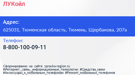 ЛУКойл по адресу 625031, Тюменская область, Тюмень, Щербакова, 207а в дальнейшем Организация, размещена в следующих категориях: