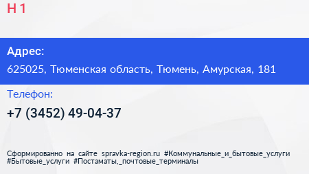 Н-1 по адресу 625025, Тюменская область, Тюмень, Амурская, 181 в дальнейшем Организация, размещена в следующих категориях: