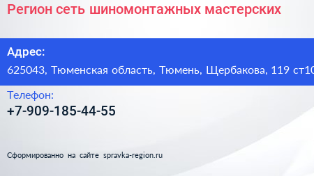 Регион, сеть шиномонтажных мастерских по адресу 625043, Тюменская область, Тюмень, Щербакова, 119 ст10 в дальнейшем Организация, размещена в следующих категориях: