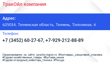 ТракОйл, компания по адресу 625014, Тюменская область, Тюмень, Тополиная, 6 в дальнейшем Организация, размещена в следующих категориях:
