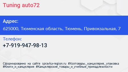 Tuning-auto72 по адресу 625000, Тюменская область, Тюмень, Привокзальная, 7 в дальнейшем Организация, размещена в следующих категориях: