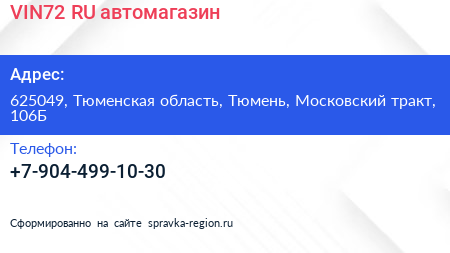 VIN72.RU, автомагазин по адресу 625049, Тюменская область, Тюмень, Московский тракт, 106Б в дальнейшем Организация, размещена в следующих категориях: