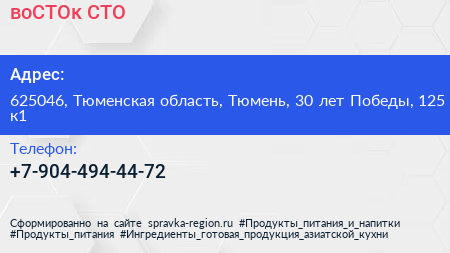 воСТОк, СТО по адресу 625046, Тюменская область, Тюмень, 30 лет Победы, 125 к1 в дальнейшем Организация, размещена в следующих категориях: