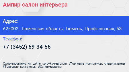 Ампир, салон интерьера по адресу 625002, Тюменская область, Тюмень, Профсоюзная, 63 в дальнейшем Организация, размещена в следующих категориях: