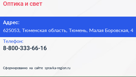 Оптика и свет по адресу 625053, Тюменская область, Тюмень, Малая Боровская, 4 в дальнейшем Организация, размещена в следующих категориях: