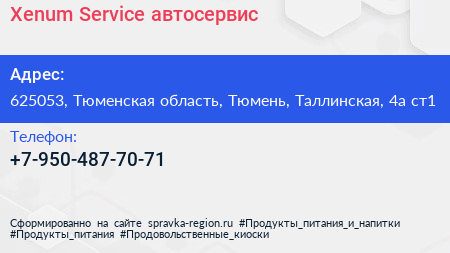 Xenum Service, автосервис по адресу 625053, Тюменская область, Тюмень, Таллинская, 4а ст1 в дальнейшем Организация, размещена в следующих категориях: