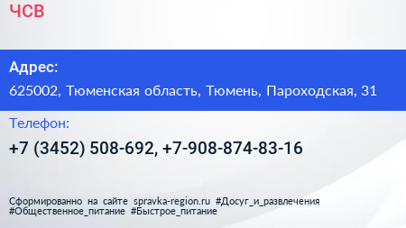 ЧСВ по адресу 625002, Тюменская область, Тюмень, Пароходская, 31 в дальнейшем Организация, размещена в следующих категориях: