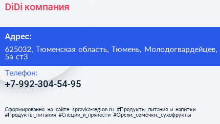 DiDi, компания по адресу 625032, Тюменская область, Тюмень, Молодогвардейцев, 5а ст3 в дальнейшем Организация, размещена в следующих категориях: