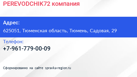PEREVODCHIK72, компания по адресу 625051, Тюменская область, Тюмень, Садовая, 29 в дальнейшем Организация, размещена в следующих категориях: