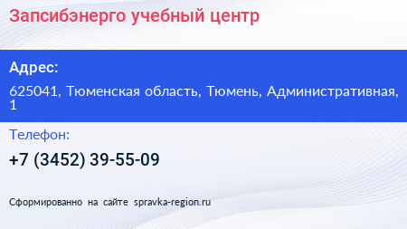 Запсибэнерго, учебный центр по адресу 625041, Тюменская область, Тюмень, Административная, 1 в дальнейшем Организация, размещена в следующих категориях:
