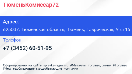ТюменьКомиссар72 по адресу 625037, Тюменская область, Тюмень, Таврическая, 9 ст15 в дальнейшем Организация, размещена в следующих категориях: