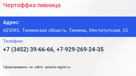 Чертоффка, пивница по адресу 625041, Тюменская область, Тюмень, Институтская, 15 в дальнейшем Организация, размещена в следующих категориях: