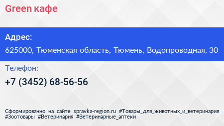 Green, кафе по адресу 625000, Тюменская область, Тюмень, Водопроводная, 30 в дальнейшем Организация, размещена в следующих категориях: