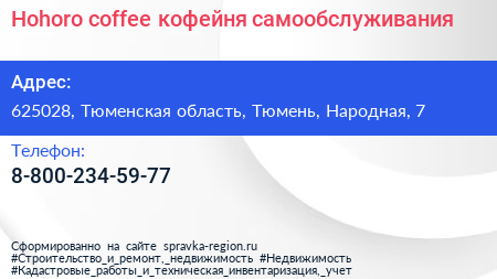 Hohoro сoffee, кофейня самообслуживания по адресу 625028, Тюменская область, Тюмень, Народная, 7 в дальнейшем Организация, размещена в следующих категориях: