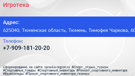 Игротека по адресу 625040, Тюменская область, Тюмень, Тимофея Чаркова, 60 в дальнейшем Организация, размещена в следующих категориях: