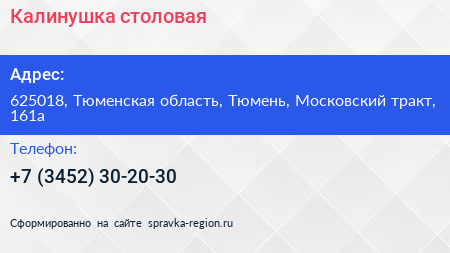 Калинушка, столовая по адресу 625018, Тюменская область, Тюмень, Московский тракт, 161а в дальнейшем Организация, размещена в следующих категориях: