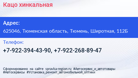 Кацо, хинкальная по адресу 625046, Тюменская область, Тюмень, Широтная, 112Б в дальнейшем Организация, размещена в следующих категориях: