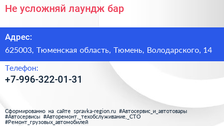 Не усложняй, лаундж-бар по адресу 625003, Тюменская область, Тюмень, Володарского, 14 в дальнейшем Организация, размещена в следующих категориях: