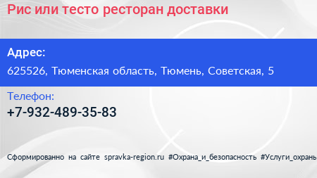 Рис или тесто, ресторан доставки по адресу 625526, Тюменская область, Тюмень, Советская, 5 в дальнейшем Организация, размещена в следующих категориях: