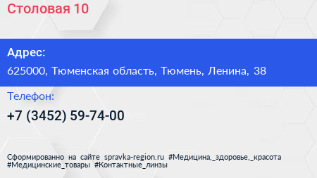 Столовая №10 по адресу 625000, Тюменская область, Тюмень, Ленина, 38 в дальнейшем Организация, размещена в следующих категориях: