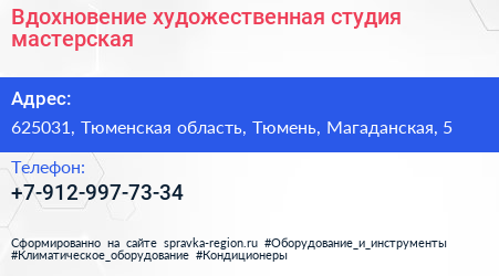 Вдохновение, художественная студия-мастерская по адресу 625031, Тюменская область, Тюмень, Магаданская, 5 в дальнейшем Организация, размещена в следующих категориях: