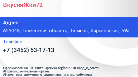 ВкусняЖки72 по адресу 625048, Тюменская область, Тюмень, Харьковская, 59а в дальнейшем Организация, размещена в следующих категориях: