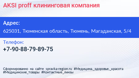 AKSI proff, клининговая компания по адресу 625031, Тюменская область, Тюмень, Магаданская, 5/4 в дальнейшем Организация, размещена в следующих категориях: