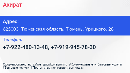 Ахират по адресу 625003, Тюменская область, Тюмень, Урицкого, 28 в дальнейшем Организация, размещена в следующих категориях: