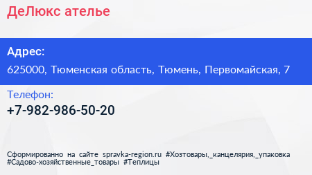 ДеЛюкс, ателье по адресу 625000, Тюменская область, Тюмень, Первомайская, 7 в дальнейшем Организация, размещена в следующих категориях: