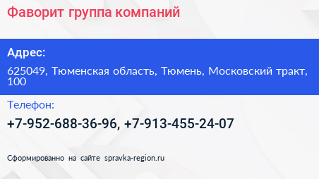 Фаворит, группа компаний по адресу 625049, Тюменская область, Тюмень, Московский тракт, 100 в дальнейшем Организация, размещена в следующих категориях: